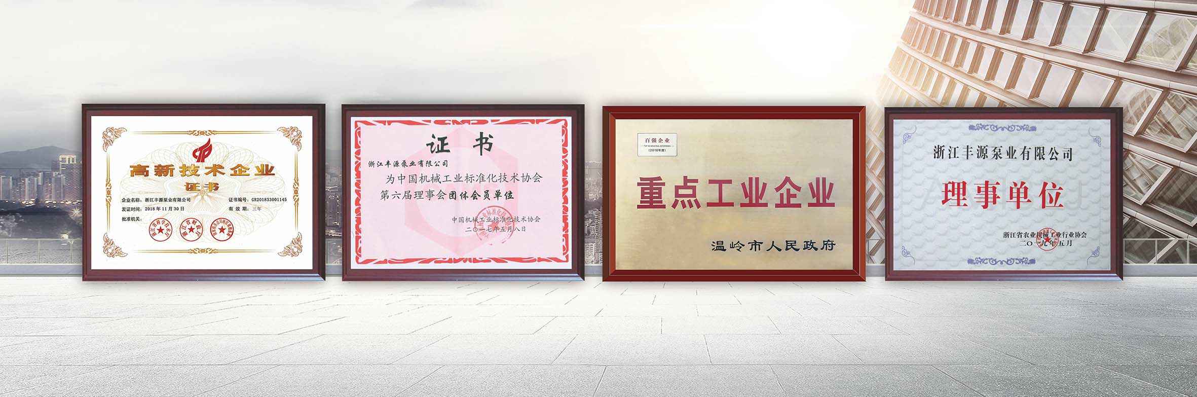 公司为“国家高新技术企业”,市级“高新技术研发中心”,连续数年入选温岭市“百强企业”。