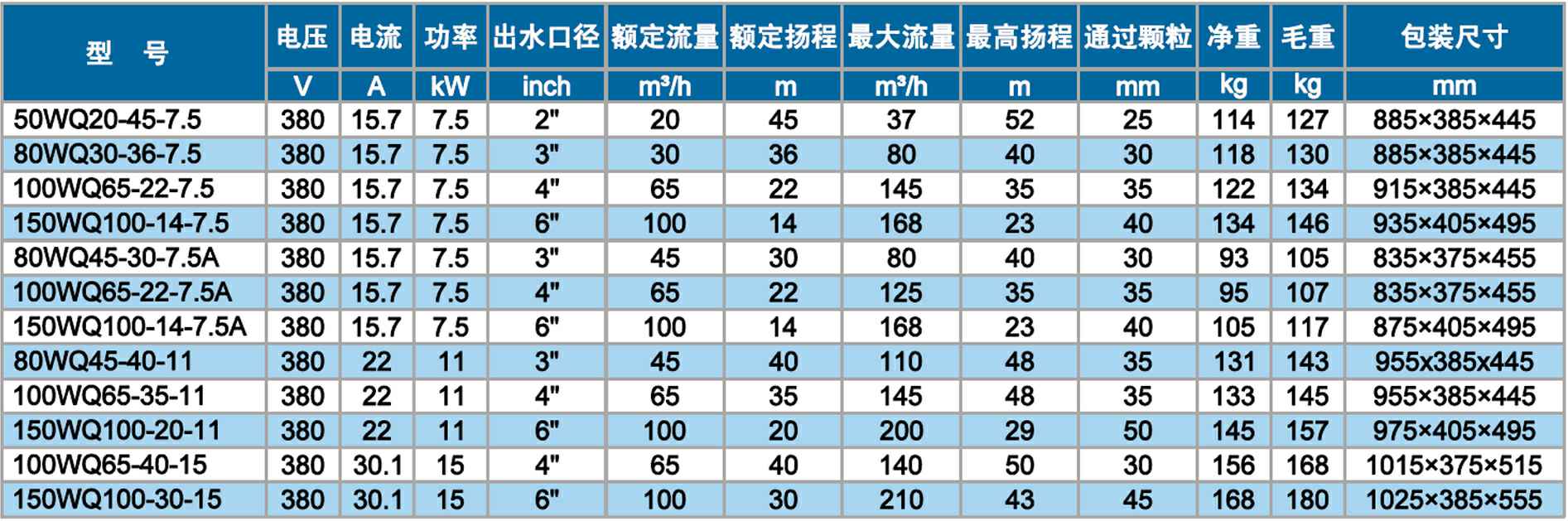 WQ双流道潜水排污泵 7.5~15kW